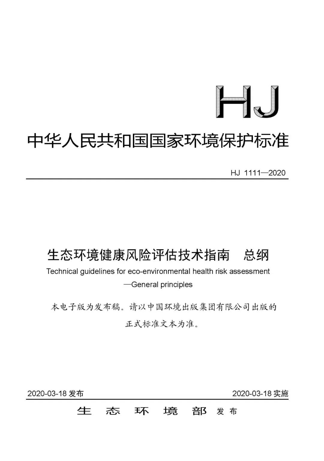 重磅 |《生態(tài)環(huán)境健康風(fēng)險(xiǎn)評(píng)估技術(shù)指南 總綱(HJ1111-2020)》發(fā)布,即日生效!
