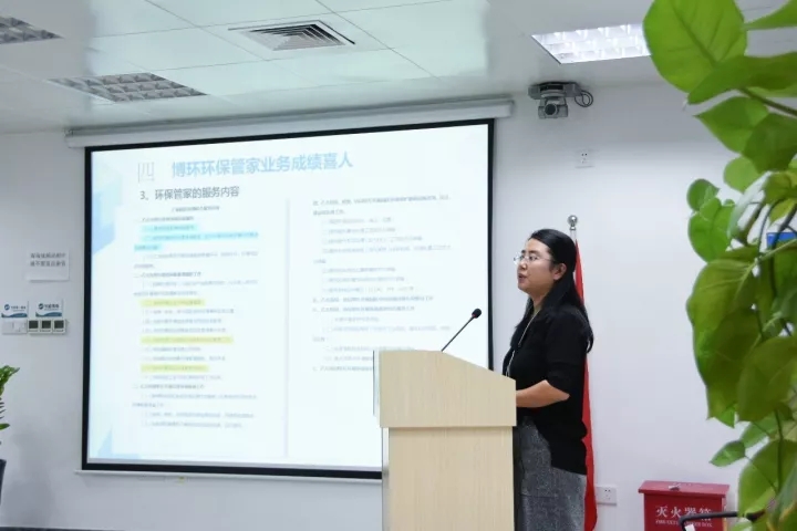 公司總經(jīng)理助理謝鴻做了精彩的環(huán)保管家項目經(jīng)驗分享。面對市場的改革,新的業(yè)務(wù)模式為公司帶來的新方向和發(fā)展的機遇。