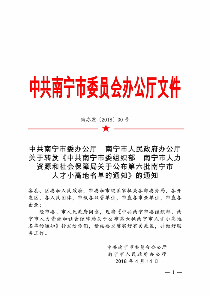 近日,中共南寧市委員會辦公廳、南寧市人民政府辦公廳聯(lián)合發(fā)布《中共南寧市委組織部南寧市人力資源和社會保障局關(guān)于公布第六批南寧市人才小高地名單的通知》(南辦發(fā)〔2018〕30號),其中廣西博環(huán)環(huán)境咨詢服務(wù)有限公司順利入選“南寧市環(huán)保管家人才小高地”載體單位。